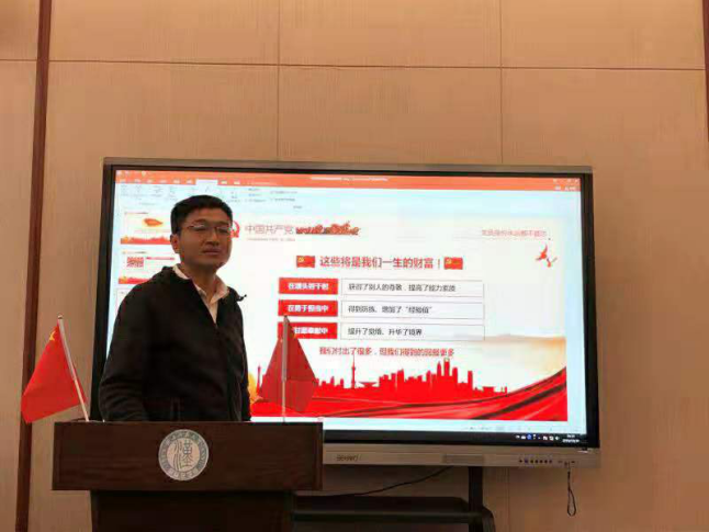 10月18日下午16:00,研究生第二党支部书记邢亚南以“牢记党员身份做合格党员”为主题,从为什么牢记党员身份、党员身份的特征、党员应尽的义务等三方面分享个人学习体会。他重点阐述了党员的先锋模范作用,从革命战争年代,到和平建设时期,到新的历史时期,层层深入,引出当代党员要做到带头学习提高、带头践行宗旨、带头爱岗敬业、带头遵纪守法、带头弘扬正气。他呼吁,支部全体党员要做到习近平总书记对党的四个要求,时刻牢记党员身份,不断加强自身党性,自觉弘扬优良传统,践行强国目标,在自己的学习及工作岗位上有所贡献。