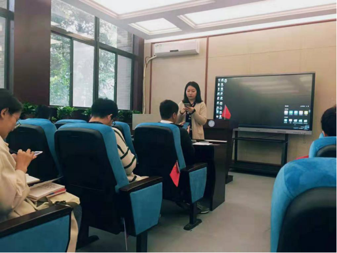 10月14日下午14:30,研究生第一党支部书记贺圆圆以“三会一课”为主题,分别介绍了支部党员大会、支部委员会、党小组会、党课的基本程序、有关规定及其职能。她主要从“三会一课”制度对于加强党的建设的基础性作用来谈个人的学习体会。她讲到,“三会一课”制度是健全党的组织生活,严格党员管理,加强党员教育的重要制度。只有长期坚持这一制度,才能增强党基层党组织的创造力、战斗力、凝聚力。她还从内容要突出政治学习和教育,突出党性锻炼;时间要做到定期、按时等方面,对支部日后如何更有效落实“三会一课”提出了建设性的建议。