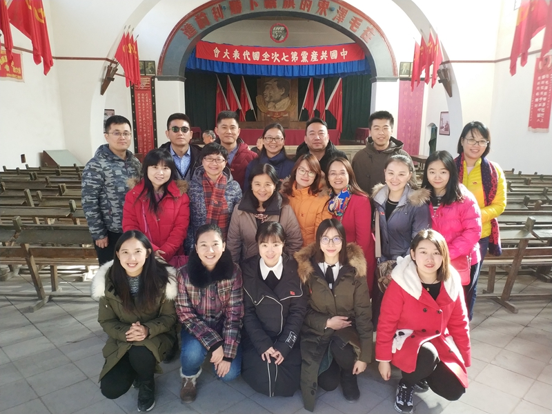 抵达延安后,党员同志们首先前往延川县梁家河村,追寻习近平总书记的知青岁月。一行人首先来到梁家河村使馆进行参观学习,在讲解员对一张张照片、一件件物品,一个个故事的解读中,党员同志们更加深入地了解了当年知青下乡所面临的困难、挑战和提高,并深刻领悟到习近平同志踏实肯干、追求进步、心系群众的工作态度和工作作风。习近平同志在梁家河期间,与老乡同吃同住,克服了“跳蚤关、饮食关、劳动关、思想关”等重重难关,光荣地加入党组织,带领梁家河村民建成了陕西省第一口沼气池,解决了百姓的用电问题;离开梁家河后,习近平同志不仅多次回村探望父老乡亲并深切关心他们的生活状况,还亲自筹资支持村里的基础建设。正如习近平同志所说“我迈出人生的第一步,就到了梁家河,当年我人走了,但我把心留在了这里”。对于习近平同志这种时刻心系群众的工作态度,大家感到异常振奋与感动,也对教书育人与为人民服务之间的紧密关系有了更清醒的认识。随后,党员们参观了梁家河知青旧址,并在学院党总支副书记吴殿华的带领下,重温了入党誓词,切实增强为实现党的十九大提出的目标任务而奋斗的责任感和使命感。