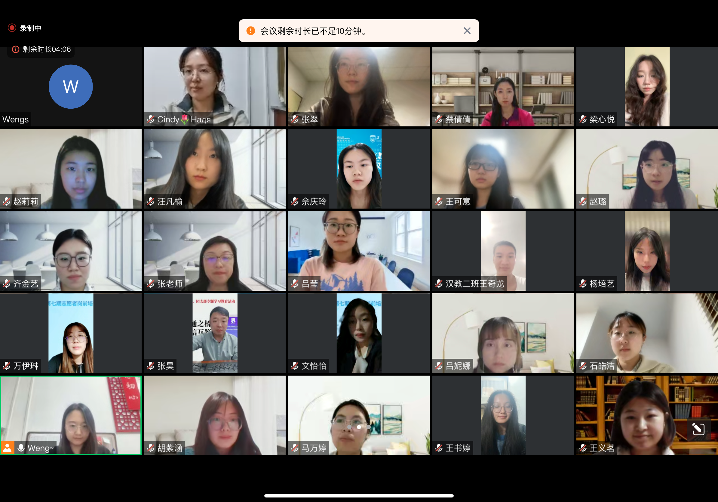 赴英国志愿者代表胡紫涵在会上分享自己在英国的教学和生活,鼓励学生来中国亲身体验中华文化,在习近平主席的贺信中感悟到中文在全球化时代的价值,中文可以促进国际交流与合作,加强文化传播来提升文化软实力。最后,向大家推荐了一些利于教学的网站和方法。