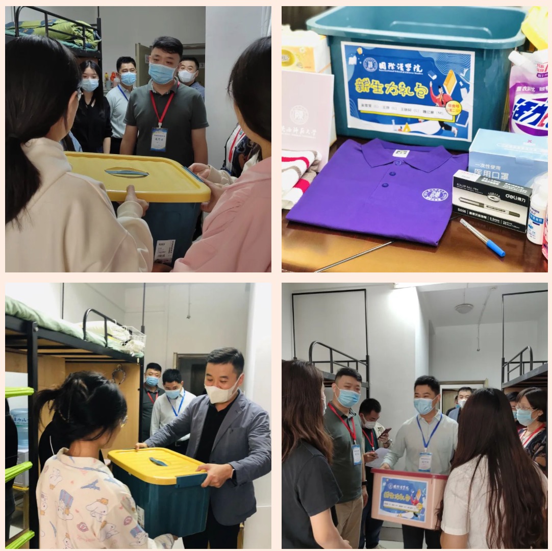 老师们依次叩响了每个寝室的门为每位新生送上了学院精心准备的新生大礼包,为新生的学业、生活、健康提供助力.
