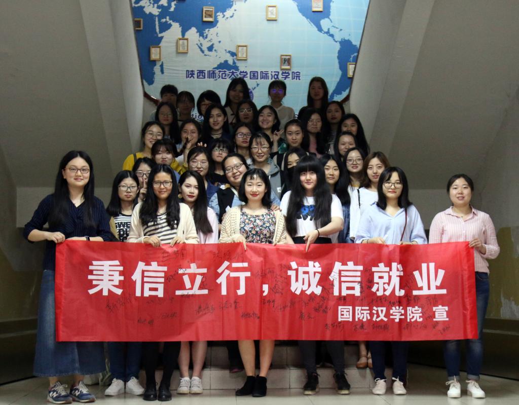 在此大背景下,为了提高同学们诚信就业的意识,班长张晓彤带领大家进行了诚信就业宣誓。“诚信是一个人立足社会的先导,让我们携手创建诚信校园,树立诚信学风,成为诚信学子,用诚信打造属于自己的一片天!”宣誓完毕,每个人在诚信就业横幅上庄重地签上了自己的名字。