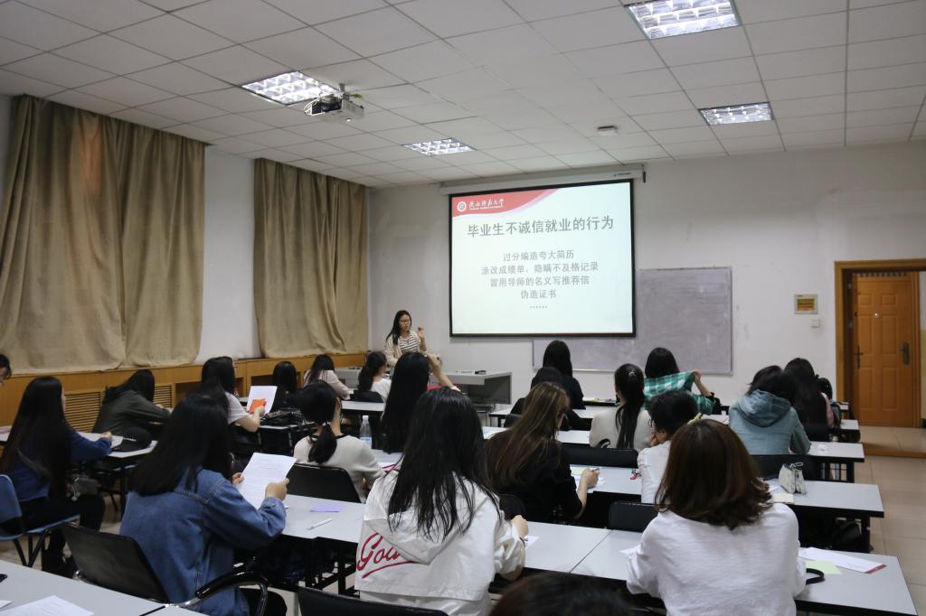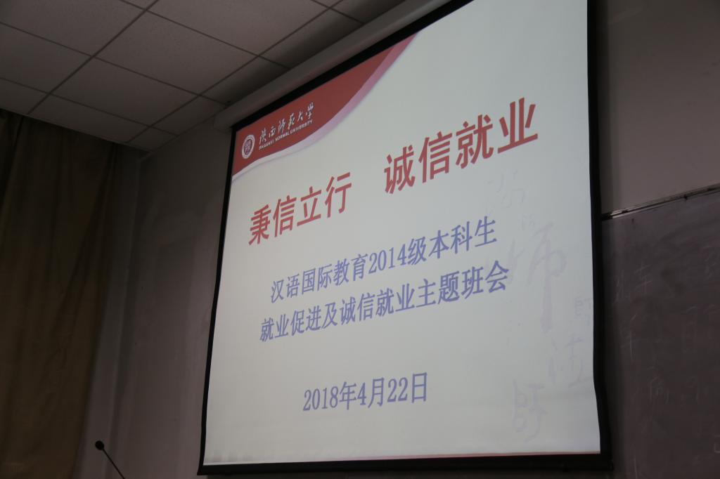 多媒体教室举行了主题为“秉信立行,诚信就业”的主题班会。