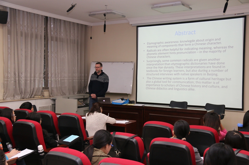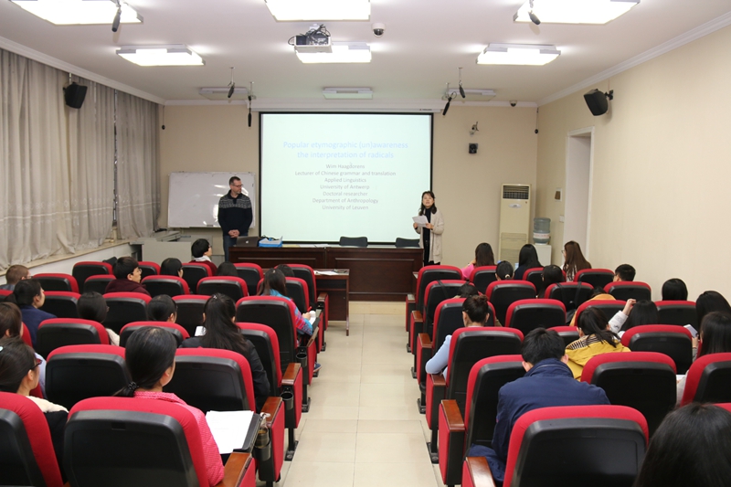 第51期国际汉学论坛在教学二楼一层报告厅举行。来自比利时安特卫普大学的鹤卫民(Wim Haagdorens)教授为学院广大师生做了题为“流行的字源认识——汉字部首释义”的讲座。学院副院长刘琨老师主持了本次论坛。