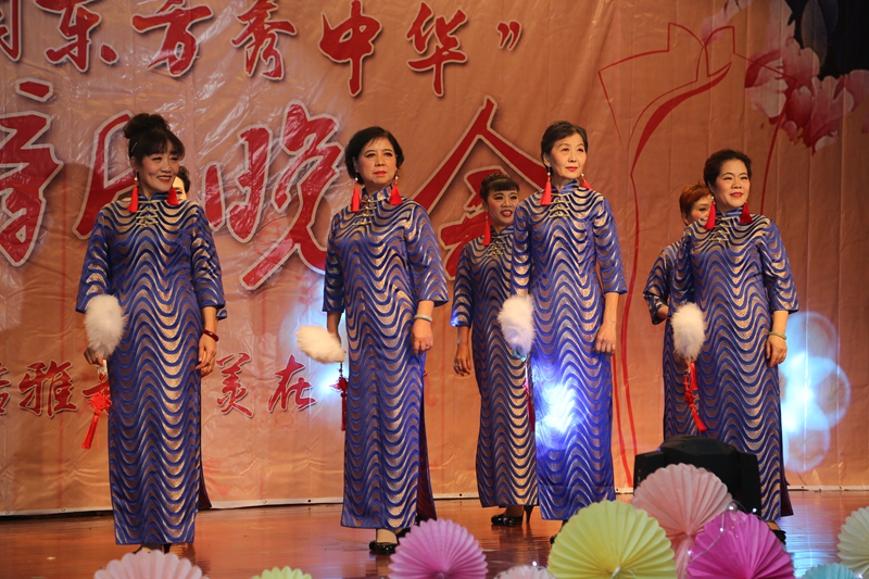 中国学生、留学生、女教师以及学校老年艺术团退休女教师身着旗袍,在舞台上展示了她们婉约娉婷的身姿。晚会以视频《你眼中的美》拉开序幕,91大神
