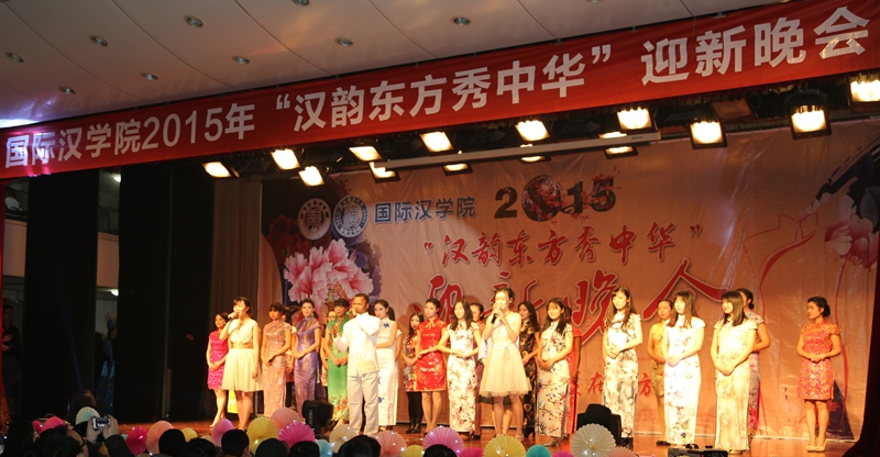 除了旗袍走秀,其余节目也饱含中国文化古典韵味。8名女生手打油纸伞,表演了舞蹈《桃花谣》。来自2013级汉语国际教育专业的6名同学将经典琼瑶剧《还珠格格》《情深深雨蒙蒙》改编成幽默喜剧《紫薇去哪儿》,引来现场阵阵笑声。来自红烛艺术团的三名女生用筝、笛子、古琴演奏了经典乐曲《沧海一声笑》,其中古琴表演者的“东方不败”扮相引起了全场轰动。四名中国学生和来自美国、韩国、土耳其、哈萨克斯坦、摩洛哥的五名留学生用六种语言朗诵了戴望舒的诗歌《雨巷》。来自乌克兰、贝宁的留学生联合学院教师一起演唱了中国流行歌曲,12名哈萨克斯坦籍留学生表演了哈萨克斯坦民间传统舞蹈。最后,伴随着一首《茉莉花》,所有中外学生模特身着旗袍走上舞台,至此,这场旗袍主题迎新晚会圆满落下帷幕。