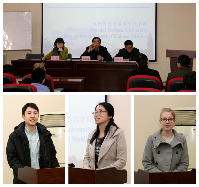 教师许端、韩国籍新生金炳主和芬兰籍新生李艳娜分别作代表发言。