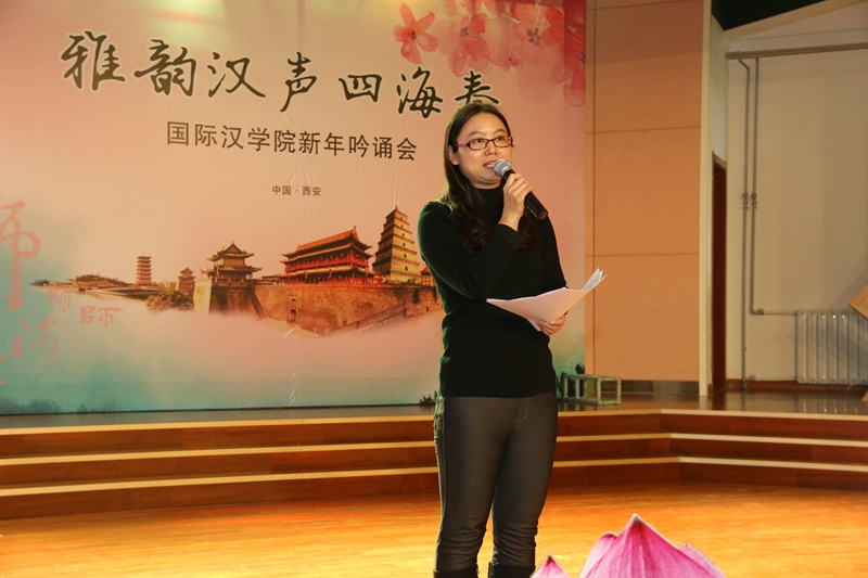 一曲小提琴协奏《蓝色多瑙河》的袅袅余音拉开了新年吟诵会的大幕,两位“中西合璧”的主持人一上台来,便以流利的语言、精妙的对白博得了一片喝彩。91大神 副院长吴媛老师向大家送上了新年的祝福,期望全院师生以吟诵的形式为生活增加一许文化积淀,也为新年添一份书香雅韵。