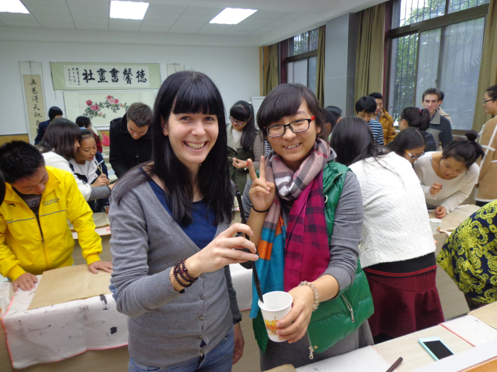 “中国书法都是黑白的,有没有其他颜色呢?”面对这样的课堂发问,小老师们耐心细致地对留学生们讲起了中国汉字的起源发展。在许多老外眼中,书法和汉字的起源过程特别神秘奇妙,他们很喜欢甲骨文、金文、篆书等象形文字。