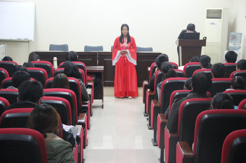 紧接着,国际部编演的双簧《师大学子图书馆奇遇记》爆笑high翻全场,气氛达到了高潮。随后,几位同学分别演唱了歌曲《中国话》、《我爱的人》和越剧《天上掉下个林妹妹》。整场表演在古色古香又不乏轻松搞笑的现代气息中度过,这体现出五洲汉韵社团不仅学贯古今,而且沟通中西的社团特色。