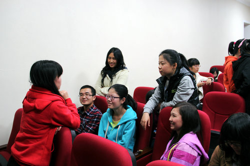 接着进行的小游戏环节使会场气氛变得更加轻松与热烈。随机抽签,被抽中的同学上台show才艺,让很多同学措手不及。活动部的陈晓薇伴着异国情调的音乐翩跹起舞,现场李代沫版的帅哥陈俊嘉自愿上台献歌,深情演唱《突然好想你》和《我的歌声里》,使得会场气氛达到高潮。