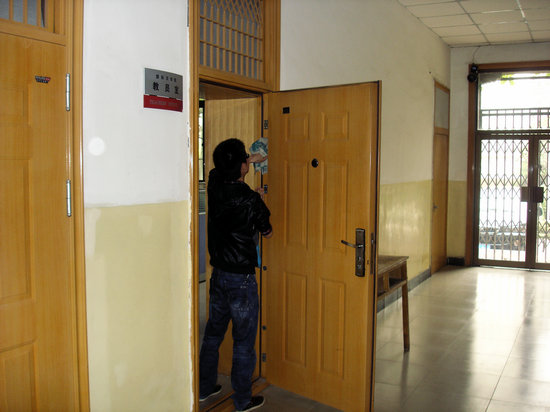 10名毕业生党员用整理展柜、打扫学院公共区域卫生的形式表达了渴望回报老师、回报母校的感恩之情。 打扫卫生原本是一件很累很枯燥的活儿,但是这一群对母校充满依恋的对外汉语2008级党员们却把它演绎成为一份对母校的依依的感念,一份对老师的深深的敬意,一份对学弟学妹的浓浓的关爱:轻轻擦拭记录荣誉的照片,见证了他们的成绩;小心传递学院友好往来的礼品,充溢着自豪与欢喜;往来于熟悉的教师办公室和常常光顾的多媒体教室,除了怀念,更多的不舍。毕业生党员所到之处,都变得明亮整洁。他们用自己的实际行动向老师、学校做出了庄严承诺:在今后的生活中,会继续用自己的实际行动诠释师大人的踏实、奉献、友爱、协作。希望母校枝繁叶茂,硕果累累!
