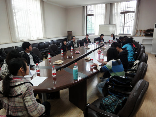 新一届的学生会留学生干部在各班班主任的积极推荐下加入了汉学院学生会的大家庭。他们分别来自美国、瑞士、泰国、越南、波兰、哈萨克斯坦、乌兹别克斯坦七个国家。他们分别介绍了自己的名字和国家以及个人的兴趣爱好,并且与部长们展开了热烈地交流。虽然有些留学生干部刚刚学习汉语,但丝毫没有影响他们希望参与活动的积极性。