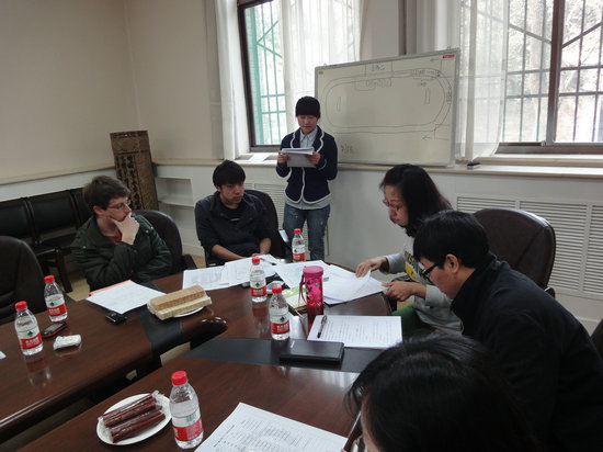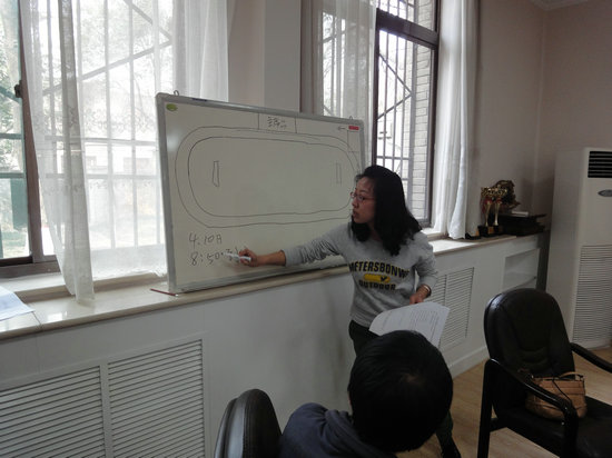 胡丹老师把本学期学生会重点推进的大型活动进行了介绍,陈宏同学和李洁同学分别把学院运动会和校运会的组织和工作安排进行了图解。留学生干部们在现场集思广益,希望能够在春季运动会中展示出汉学院独特的风采!
