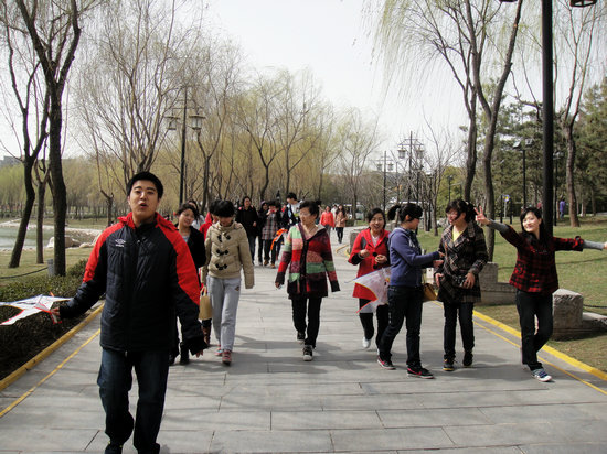 连续几日的阴云终于在23日这日散去,上午9:30,09对外班的全体同学一齐向曲江遗址公园进发,开始今春的首次踏青之旅。