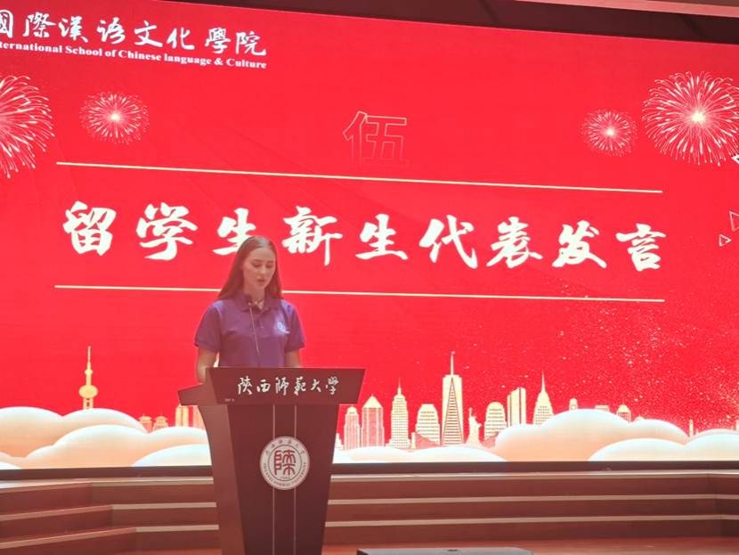 来自俄罗斯的国际研究生新生代表丽玛上台发言,经过自己在91大神 四年本科的学习,已经从“老外”变为“老内”,她鼓励初到中国怀揣梦想的留学生新生们:第一,不要害怕犯错,勇于开口。第二,多参加校园文化活动,这是学习汉语最好的方式。第三,主动结交中国朋友,他们会是你最好的老师。第四,保持好奇心,每天学习新知识。同时她作为研究生新生还表达了对未来学习生活的美好期待,并表示将珍惜宝贵的求学机会,努力学习专业知识,积极促进中外文化交流,争做文化交流的使者。