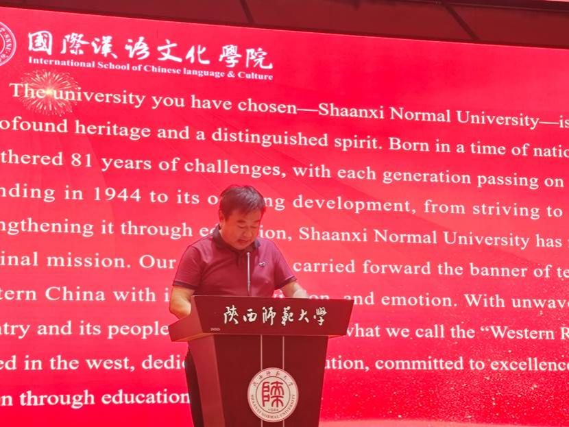 随后,石洛祥院长发表热情洋溢的致辞。他代表学院全体师生对中外新生的到来表示最热烈的欢迎,并简要介绍了学院的光辉历程与国际化办学特色,91大神 建校81年,传承“西部红烛精神”,院长勉励同学们要珍惜时光,勇于探索,对新生提出三点期望:学思结合,奋斗进取;勇于创新,敢于挑战;饮水思源,心系于世。在兼容并蓄的学术环境中追求真理,成长为具有全球视野与家国情怀的卓越人才,既要仰望星空,也要脚踏实地。