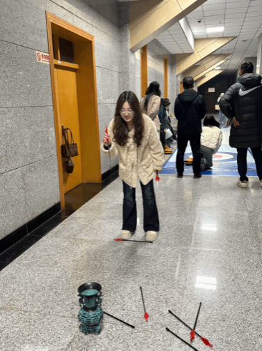 在乒乓球、趣味投壶、陆地冰壶等项目中也不乏精彩瞬间。中外师生们或切磋球技、或体验传统投壶的乐趣、或感受陆地冰壶的策略与协作,在轻松愉悦的氛围中享受运动的快乐,更在跨文化交流中拉近距离、增进了解。
