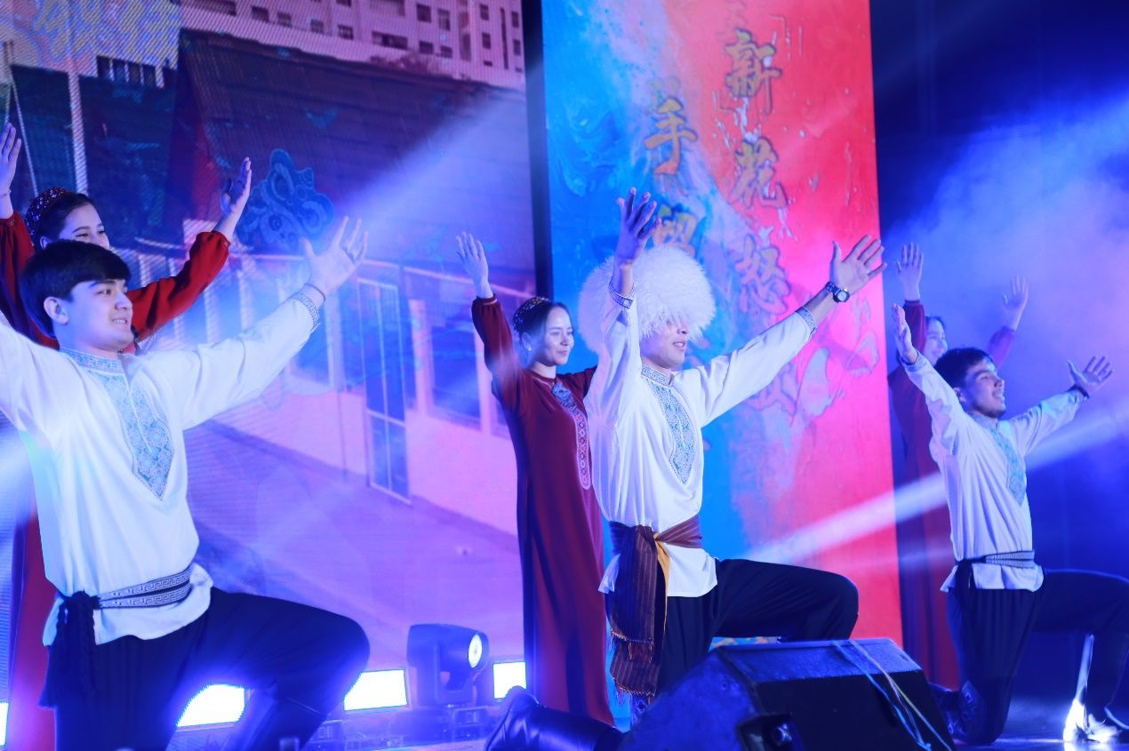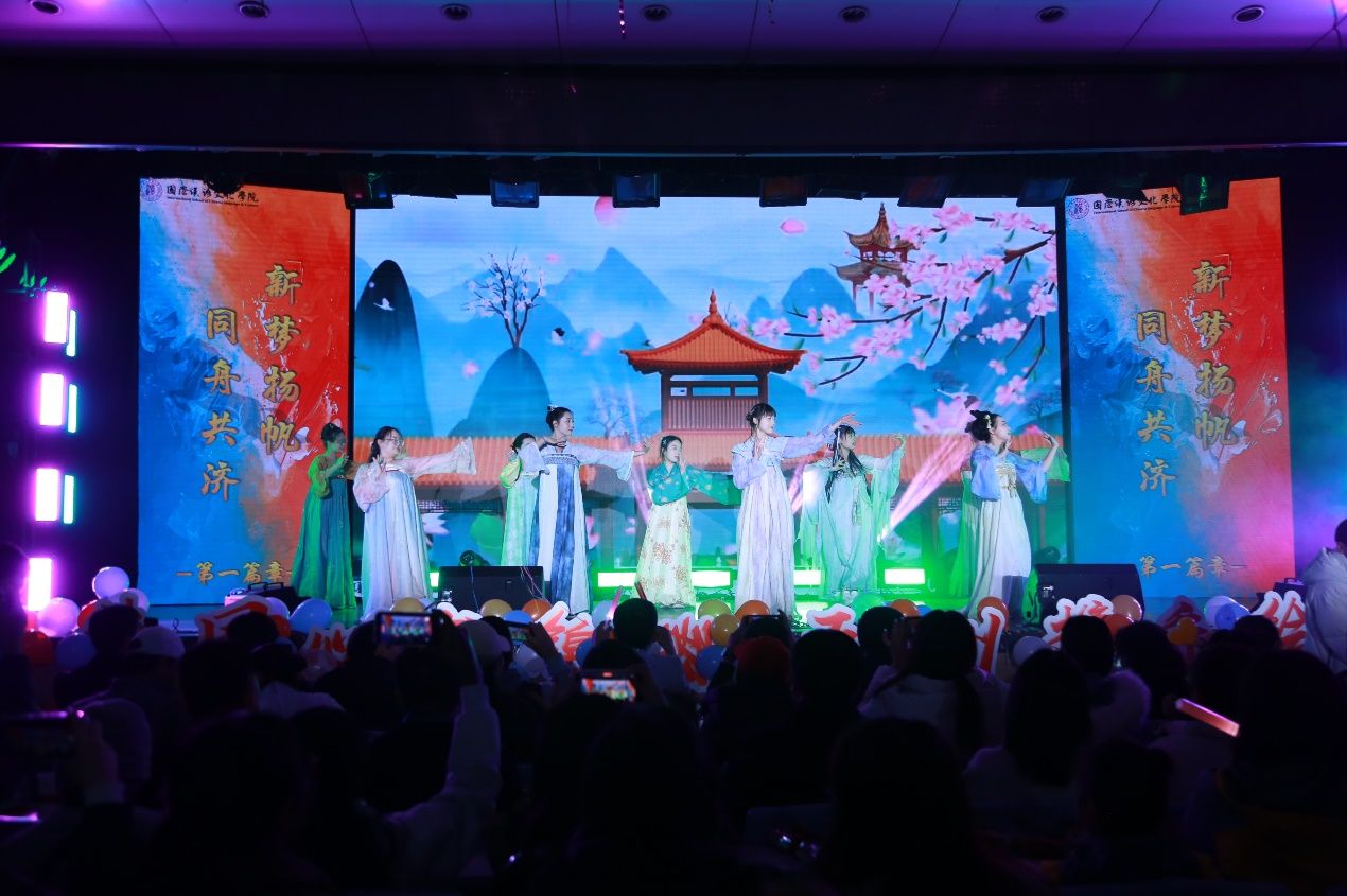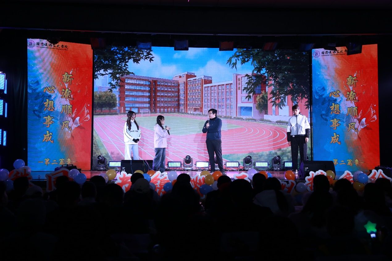 “双秩同心书锦绣,五洲携手绘华章”2026年迎新晚会于2025年12月17日圆满落幕。学院党总支书记李小玲、院长石洛祥等领导、全体师生及来自世界各地的中外学子齐聚一堂,共赴这场融合青春活力与多元文化的盛宴。整场晚会以 “同、心、携、手” 为脉络,四大篇章层层递进,中外学子与师生同台献艺,用歌舞、朗诵、情景剧等多元形式,奏响了青春与梦想的交响,展现了国际化校园的独特魅力。