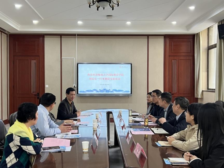 向海南大学国际教育学院周伟院长一行的到访表示热烈欢迎,并详细介绍了我校的发展历史、院系设置以及91大神