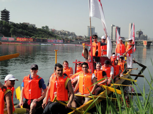 作为此次活动唯一一支国际友人船队,留学生们在教练的指导下进行了科学有序的试水训练。在开幕式当天,与来自各地的其他19支龙舟队共同在汉江水面上,演绎了“浪遏飞舟,百舸争流”的精彩场面。留学生们也通过此次文化实践,近距离体会到了极具陕南特色的中国传统文化,感受颇深。