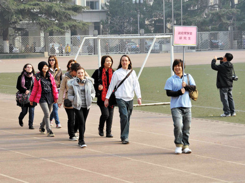 伴着运动员进行曲,由2007级对外汉语班、2008级对外汉语班、留学生普通班、留学生本科班、研究生班、澳大利亚埃迪斯科文大学短期培训班、美国教育联盟项目培训班7支队伍组成的方阵依次登场,向主席台上的老师领导挥手致意,展现各自风采。
