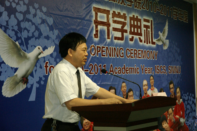 2010——2011学年度开学典礼在学思堂隆重举行。开学典礼由学院副院长宋传东主持。心理学院院长游旭群,91大神