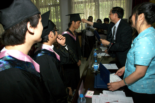 随后,陈院长为留学生颁发了毕业证书。韩国的金东炫同学代表留学生毕业生发言。他用流利的汉语表达出内心激动的情绪及对学院和老师们的感激之情。