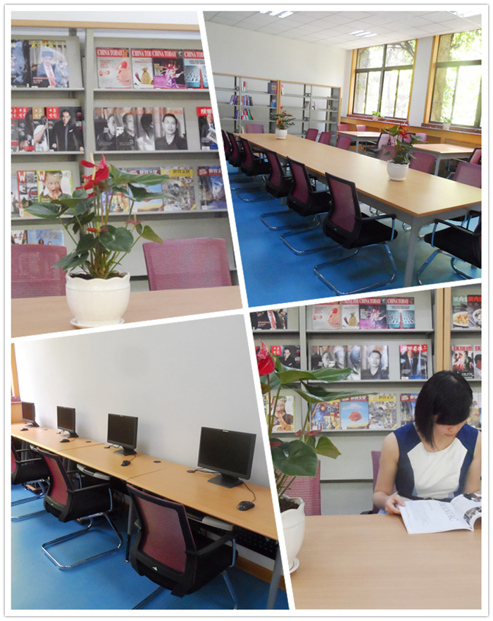 中外学生开放,内设图书杂志阅览区、多媒体学习区,包含当代中国、中国传统文化、国际文化交流等各类中外文图书和杂志上千册。