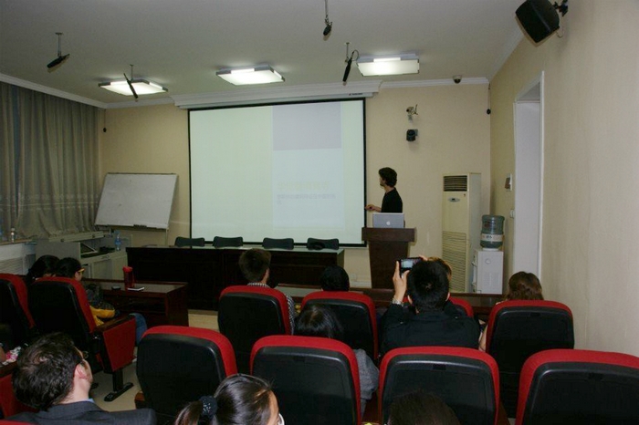 在读留学生,来自美国富布莱特奖学金项目的Cory Welch、Dylan Jeffers、Kathleen Naccarato等三位同学在进行了充分的社会调研基础上,分别以“中国当代艺术”、“西安化觉巷穆斯林建筑风格探究”以及“中国时尚元素”为课题向大家做了精彩分享,并与在场的同学们展开热烈讨论。在场的学生被美国留学生的严谨、认真和深入调查的态度所感染,美国学生也对中外学生对他们的调研报告提出的建设性建议表示感谢。