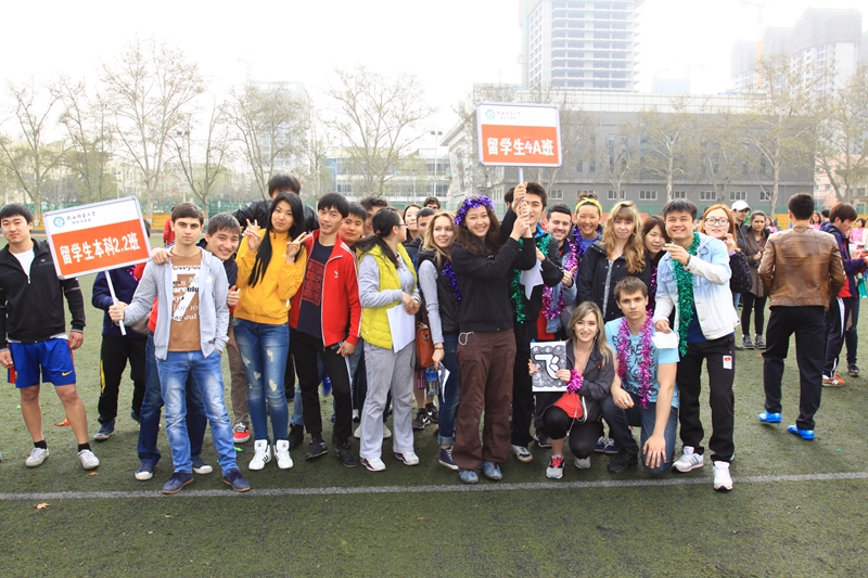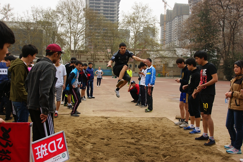 比赛的第一项是女子100米,随后短、中长跑、跳远、等项目有序依次展开。中外学生们同场竞技,老师同学们加油呐喊。来自哈萨克斯坦的阿七在跳远比赛中成绩优异;来自喀麦隆的半雪在女子一百米和二百米中连摘桂冠;来自哈萨克斯坦的杨乐朗在男子1500米中夺得第一名,来自乌克兰、韩国、哈萨克斯坦的尤利亚等同学在女子4×100米中成功夺魁。运动员们在赛场上发扬着奥林匹克精神,他们协作互助,奋勇争先,取得了傲人的成绩;场下观众们也不停为运动员呐喊助威。中午时分,运动会在中外师生的欢声笑语中圆满落下了帷幕。