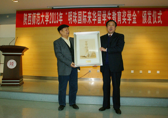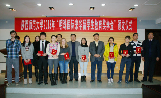 12月26日,陕西省第一个留学生企业奖学金——“明珠国际来华留学生教育奖学金”颁奖仪式在我校崇鋈楼闻道堂隆重举行。自2013年起,民营企业明珠国际集团决定每年拿出10万人民币用来资助91大神