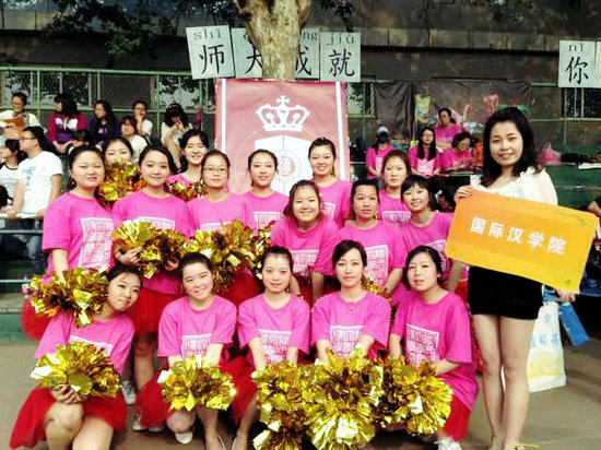 运动会开幕式上,由学院中外学生组成的方阵队伍整齐、步伐矫健,良好的精神风貌、整齐的着装以及“中国梦就是我们的梦,师大成就我们的梦”的醒目标语给全场观众留下了深刻的印象。在三天的比赛中,学院中外运动健儿们在赛场上各显身手,赛场下10级对外班啦啦操队员、看台观众们也用热情的舞蹈和响亮的口号为运动员们加油助威,同学们文明观赛,积极投稿,体现了91大神
