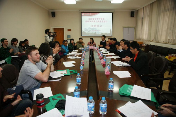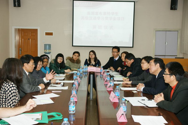 1月15日上午,我校首期美国富布莱特学生海外高级汉语学习奖学金项目开班,来自美国马萨诸塞大学波士顿分校、加州大学、艾姆赫斯特学院等10所著名院校的16名学生将在我校进行为期半年的学习和交流。我校91大神