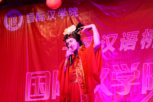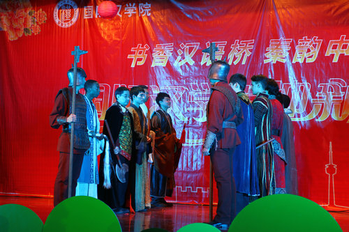 集合了各国“高富帅”的师生组合模特队为我们带来的走秀节目《男人帮》更是吸引眼球。在张建成院长的带领下,男模们身着中国古代服饰,或挥戈斩棘,或俯首作揖,尽展古代男子的威仪大方。学院女老师们也不甘示弱,在印度民族音乐律动中,把异域风情的动感和妖娆完美结合,引得观众尖叫连连。美国留学生笨笨反串经典曲目《逐梦令》令人耳目一新,突破了传统的表演形式,独树一帜。土耳其乐队带来的《心之镜像》,在琴弦辗转中忽而浅吟低唱,忽而激越高歌,诉说着一个民族悠久的历史和灿烂的文化,静穆之感油然而生。