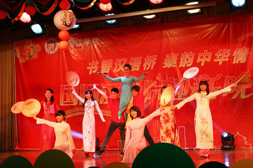 师生辞旧迎新的欢庆和团聚的大聚会,也是我校各国留学生会见老朋友,结识新朋友的联谊会,既促进了中外学生间的交流联谊,也给我校外国留学生们进一步了解中国、了解西安、了解师大提供了别开生面的舞台。我校留学生们也通过这台晚会充分展示了各具特色的异国风情和精彩迭出的个人风采。同学们带着中国梦从世界各地来到陕西师大校园,克服种种困难适应这里的生活。课堂上,他们勤奋努力、刻苦学习专业知识和汉语;舞台上,他们才艺出众,表演精彩绝伦。他们用自己的青春为学校的国际化进程再添新彩,和学校共同成长,他们是学校的宝贵财富,也成为了冬日校园里一道靓丽耀眼的别样风景线!