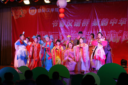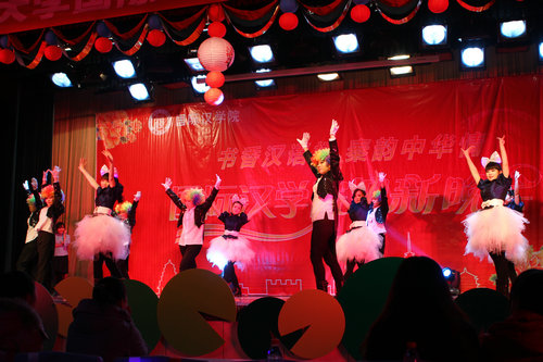 越南留学生的歌舞剧《越南之乡》把家乡美丽多情的人文画卷在观众心目中徐徐展开,赢得阵阵掌声。韩国留学生表演的原汁原味的《江南 style》更是high翻全场,风靡全球的骑马舞跳出了青春,跳出了活力,将晚会推向了高潮。无论是活泼可爱的《米奇曼波舞》,还是幽默诙谐的《水煮大唐》,都让观众朋友们感受到了新年的温馨和快乐,展现出汉学院中外学子日新月异的变化。在观众朋友们赞叹感慨、意犹未尽之时,霓裳轻扬的古典舞《凤凰于飞》将晚会带入了尾声,让人不禁再次萌生出美好的时光总是那么短暂的感喟。