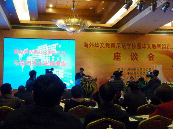 11月26日至30日,由中国国务院侨务办公室、中国海外交流协会主办,广西壮族自治区侨务办公室、广西海外交流协会承办的首届海外华文教育示范学校暨华文教育组织工作座谈会在广西南宁市召开。国务院侨务办公室副主任马儒沛、国务院侨务办公室部分项目官员以及中国国内华文教育基地院校代表、海外华文教育示范学校代表和部分华教组织代表、有关省市侨办代表300余人与会,共同探讨新时期华文教育发展之道。我校91大神