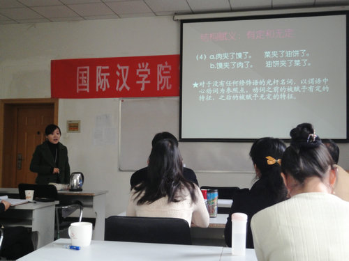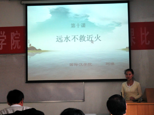 院长张建成、副院长赵学清、吴殿华以及教师代表邵英、刘琨和李锦担任了比赛的评委。学院对外汉语教育专业近30名各年级的学生自发学习观摩了比赛。