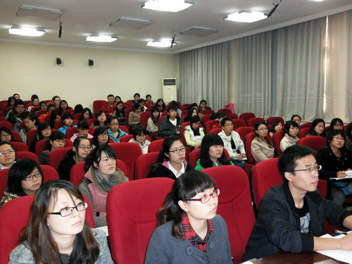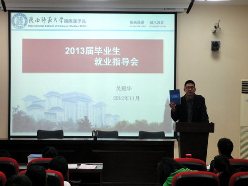 在教学二楼一层报告厅举行2013届毕业生就业指导会。学院副书记吴殿华、辅导员胡丹参加了此次会议。