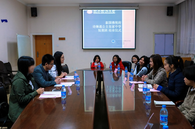 结业仪式开始前,首先播放了一段由汉学院制作的纪录片,展示了学生们为期半个月的学习成果。学生们在学习听力、口语等汉语言课程之外,还进行了民族舞、民歌、武术等传统文化课程学习;游览了钟鼓楼、城墙、兵马俑、关中民俗博物院、法门寺、乾陵等历史文化胜地;参与了中泰学生座谈、趣味运动会、西安市六十六中学参观等学生交流活动。结业仪式上,学生用中文对自己为期半个月的学习生活做了总结,表达了对汉语以及中国文化的喜爱之情,并演唱了《我们的明天》《朋友》两首中文歌曲。