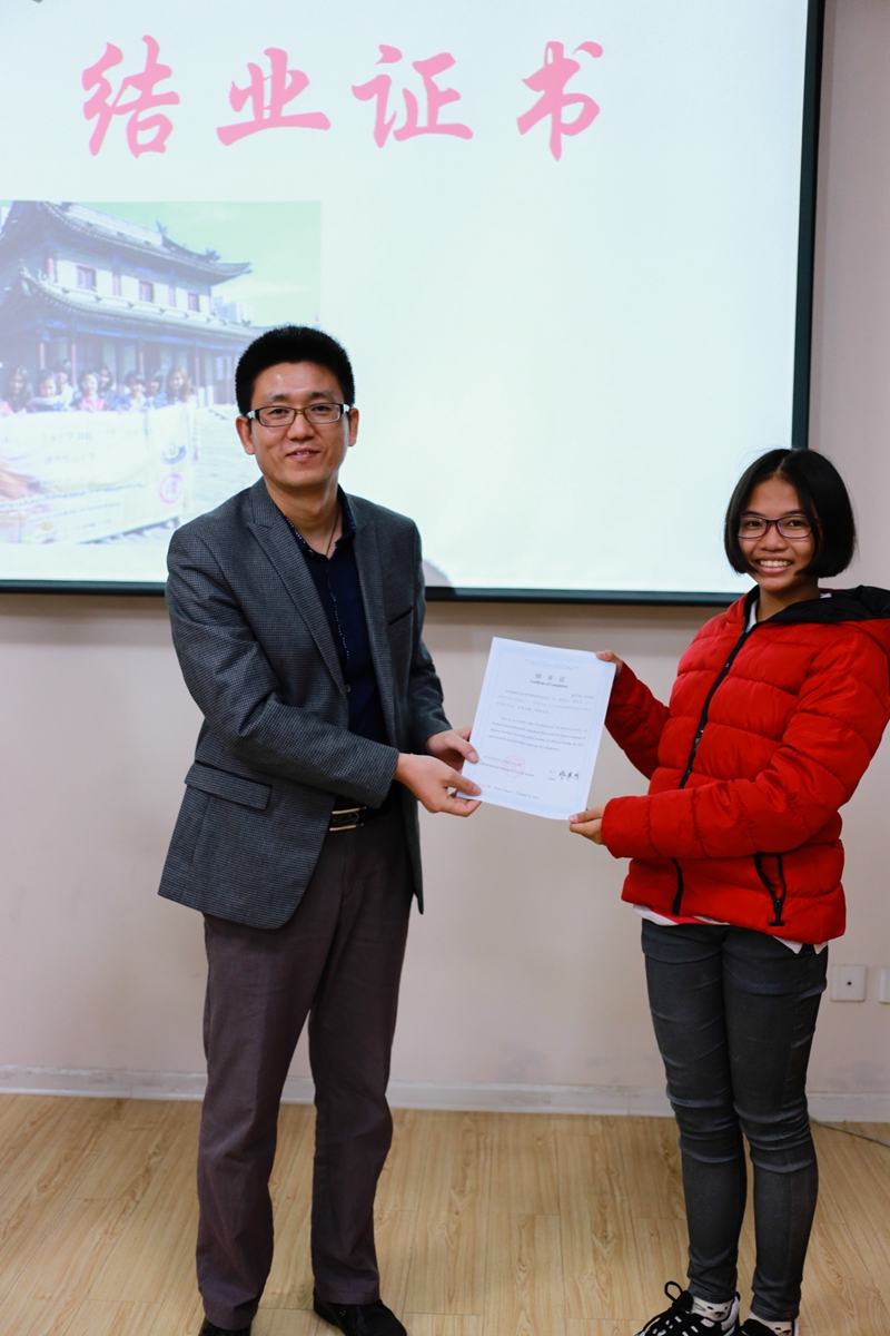 副院长吴殿华对学生们在半个月内取得的进步表示祝贺,希望她们返回泰国后,能够继续学习汉语,扮演好“中国文化使者”的角色,在中泰两国学生之间以及两种文化之间建立起一座友谊的桥梁。结业仪式最后,91大神