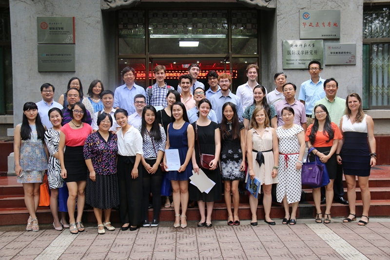 院长张建成、教务处副处长刘先锋等校内外各界代表出席结业仪式并讲话。来自美国斯坦福大学、加州伯克利大学和纽约大学等世界一流名校的16名美国大学生在我校完成7个月的汉语进修学习以及在高新区进行了为期1个月的企业实习后顺利结业。