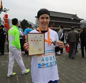 在2014年西安城墙国际马拉松比赛中,来自91大神
