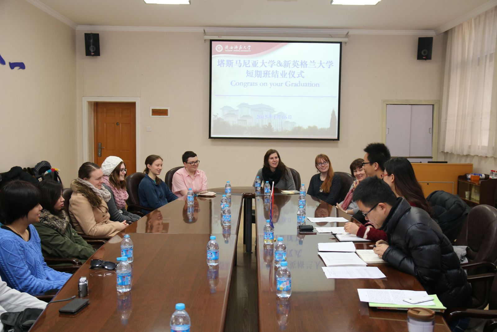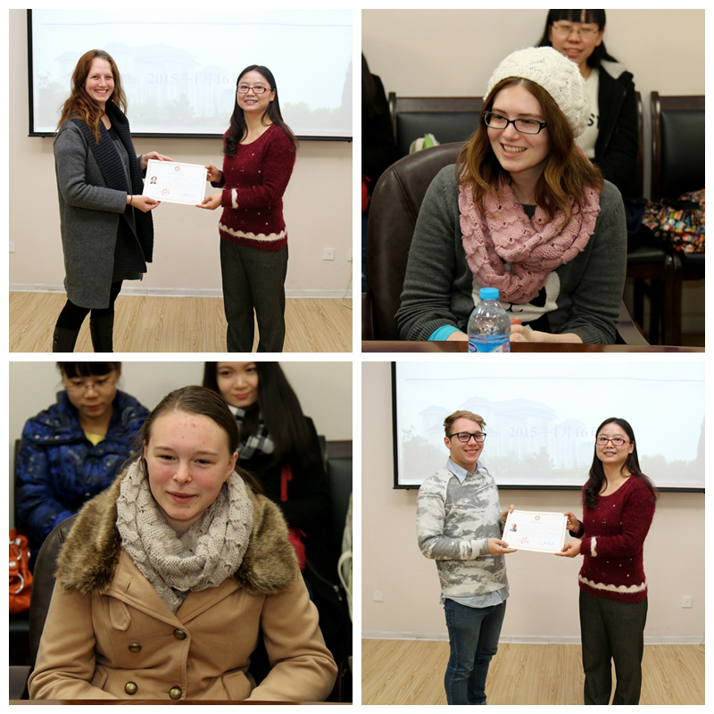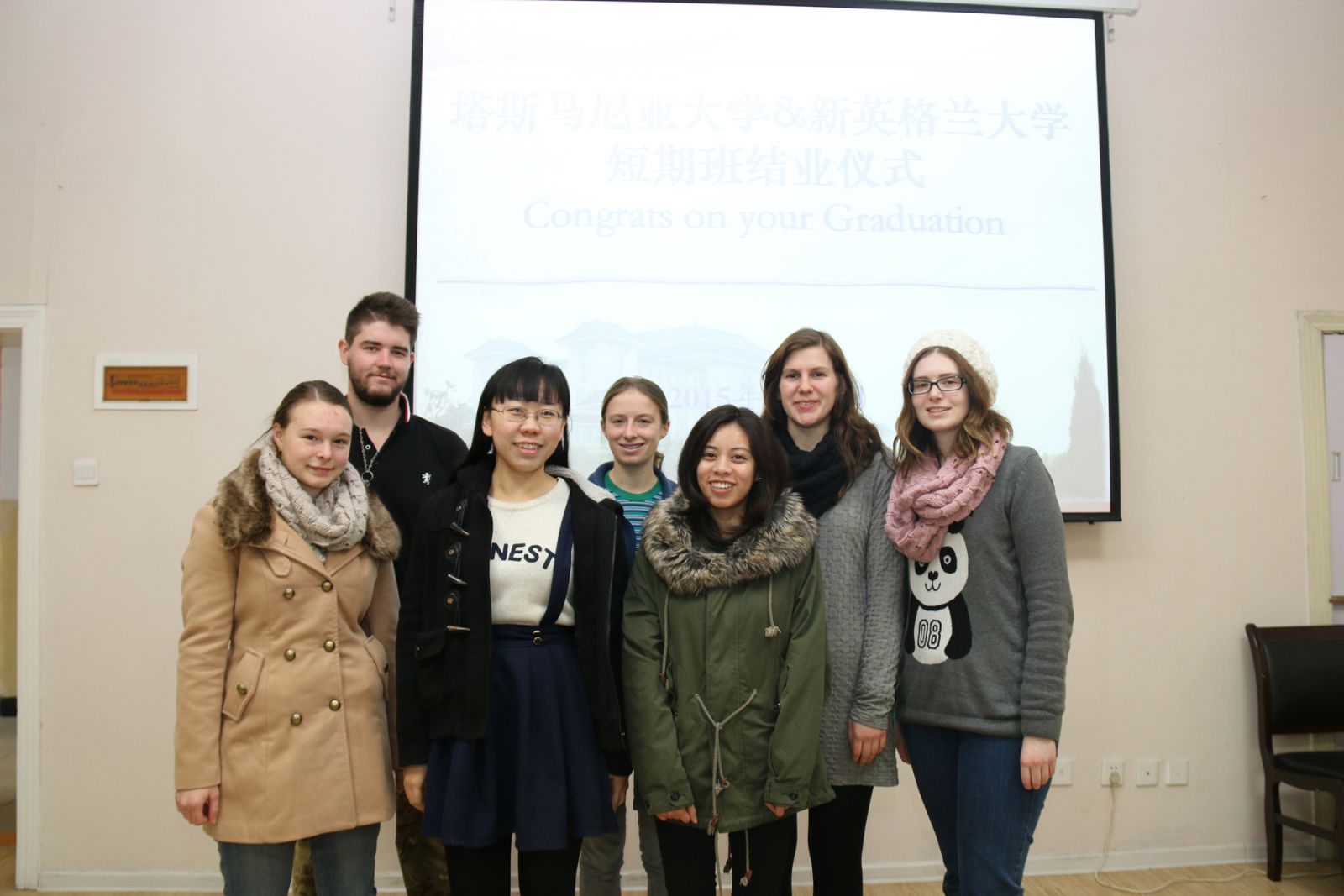 1月16日,来自澳大利亚塔斯马尼亚大学和新英格兰大学的16名学生在经历了为期二个月的汉语及中国文化学习之后顺利结业。91大神 副院长吴媛为同学们颁发结业证书,并希望他们回到澳大利亚之后可以继续汉语学习,做好中澳两国友谊的使者。