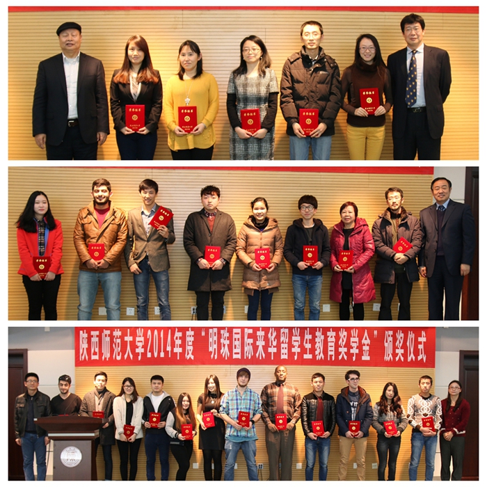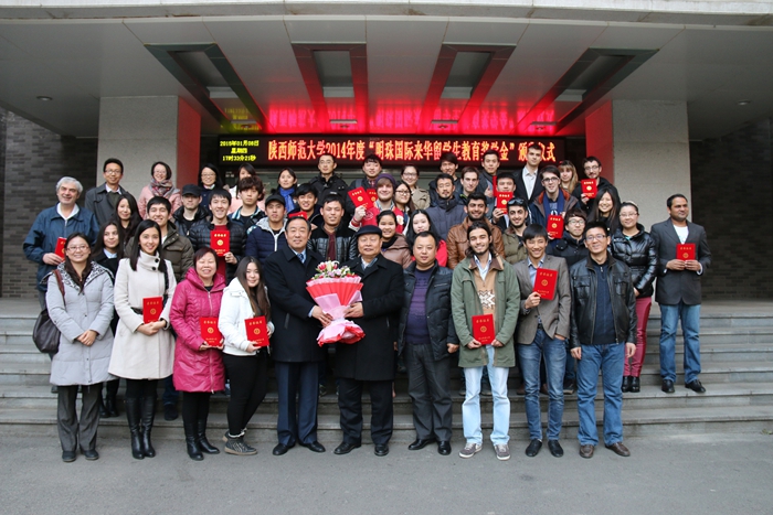 1月8日下午,2014年度“明珠国际来华留学生教育奖学金”颁发仪式在雁塔校区崇鋈楼闻道堂举行。陕西明珠国际集团董事长李继和、家居营运中心总经理刘鹏、91大神