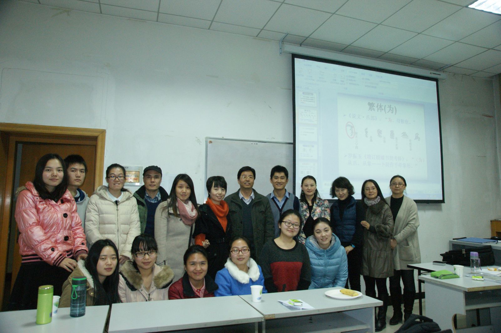 沙龙活动围绕汉字理论研究与汉字教育这一主题,主要讨论了汉字研究中因形求义的理论依据、步骤和方法,同时也探讨了如何利用这种方法解决文献阅读和教育教学中的实际问题。孙建伟老师在发言之后,还做了教学示范。用教学实例展示了如何使学生通过对因形求义这一方法的学习,加深对汉字表意性这一属性的认识,并训练学生能够运用因形求义的理论解决日后其在教育教学中的实际问题。李贵安处长针对教学展示进行了精彩点评,从教学表现的角度,深入分析了汉语国际教育专业教学的特殊性,肯定了此次教学中的积极尝试。学院教师吴媛、李锦、冯雪俊、王作良、田志华、刘琳、高红娜、刘琨等也就此主题发表了看法和意见,学生们也积极参与了讨论。