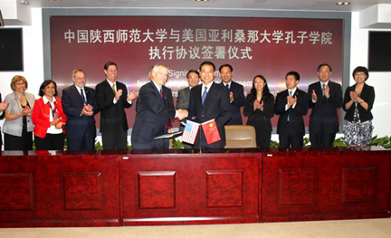 首家孔子学院于2013年5月与美国亚利桑那大学签署合作协议并正式成立,双方在留学生培养、汉语外派教师、海外实习基地、短期文化交流等方面开展了一系列合作。