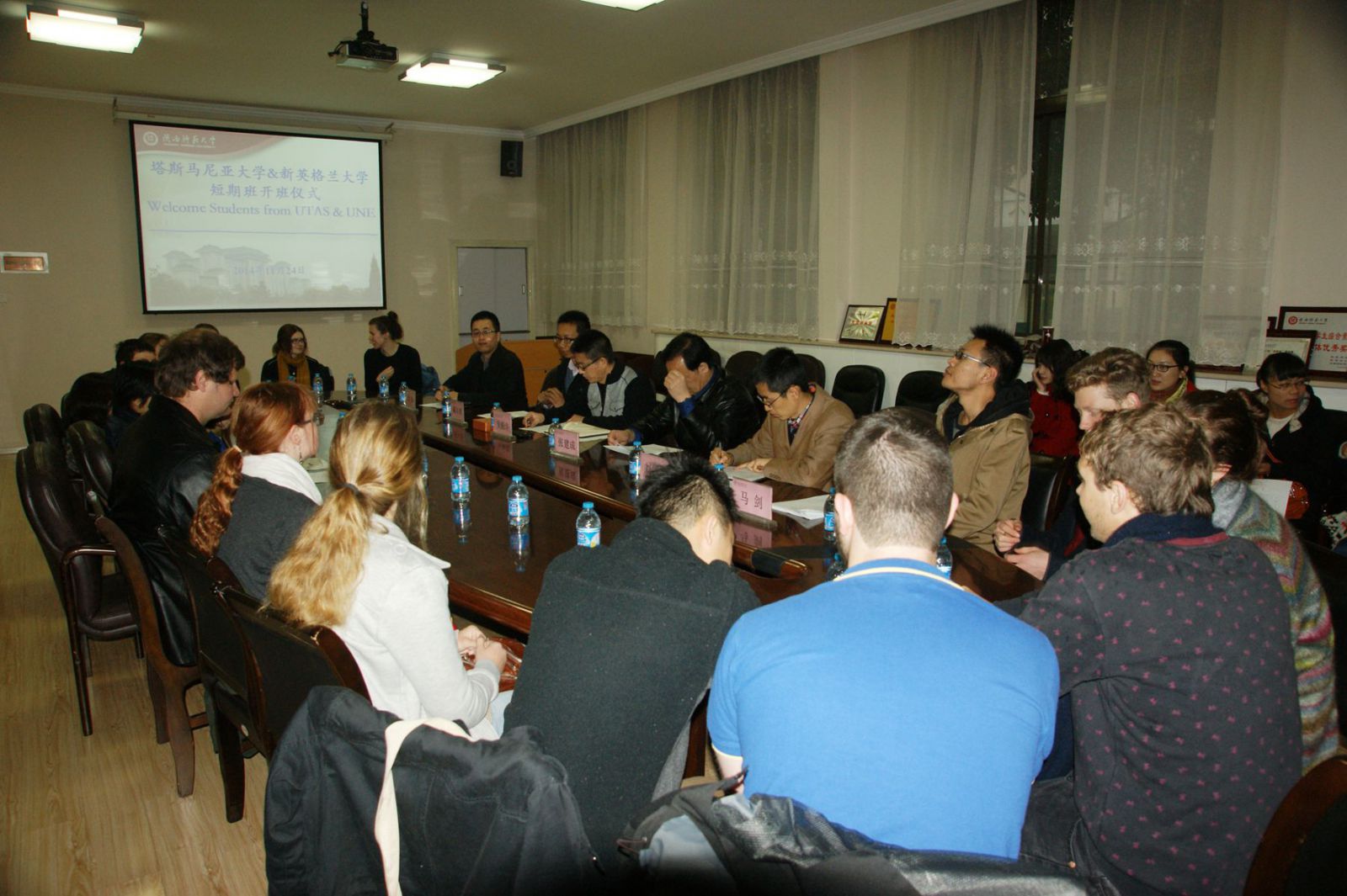 张院长对各位师生的到来表达了最诚挚的欢迎和感谢。他说,习近平主席才刚刚访问完澳大利亚塔斯马尼亚,我们便迎来了来自这片美丽土地的学生,让人倍感亲切,这是中澳两国人民友谊的延伸与巩固。很多同学是第一次来到异国他乡,会遇到很多问题,也会学到很多知识,这是成长中非常重要的时刻,一定要珍惜这种机会,好好学习,了解中国人的生活与文化,在短短的两个月时间里收获更多。