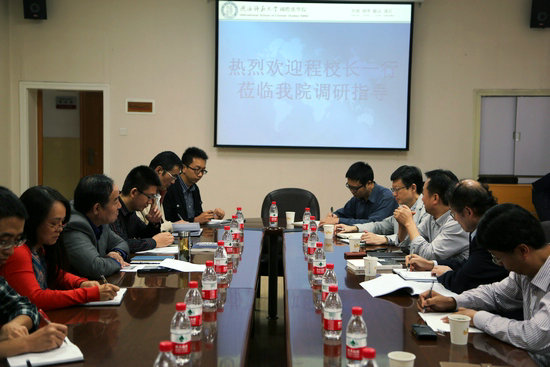 院长张建成代表学院党政班子成员和全院师生员工对程校长到学院调研指导表示了欢迎和感谢,他从学院的基本现状、近年来主要成绩、目前存在的主要问题、促进学院发展的思路以及今后的建设愿景等方面作了学院现状分析与未来发展的工作汇报,并重点就学院的办学定位模糊、当前体制严重制约学院快速发展、办学软硬件设施条件不够配套等几方面谈了学院亟需解决的问题。学院教师代表邵英对程校长新学期伊始就到学院调研指导感到十分的振奋和激动,并从教师的角度表达了全院上下渴望改革、加速发展、培养更多优秀中外人才的愿望,希望学校能对91大神